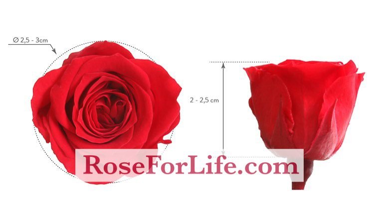 • Dimensione rosa: altezza 2/2,5 cm. Ø 2,5/3 cm.