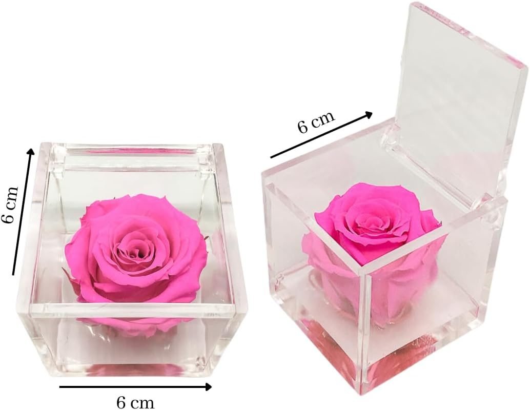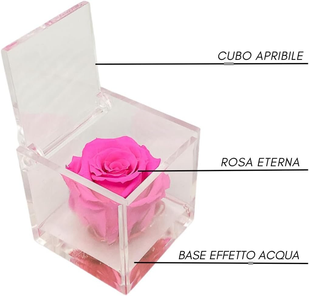 • 🌹 CUBO CON ROSA COLORATA – I nostri cubi con rose stabilizzate colorate sono un regalo originale per ogni occasione speciale. All’interno del cubo trasparente ed apribile, c’è una rosa stabilizzata immersa in un fondo trasparente con bollicine, per ricreare l’effetto di una rosa che galleggia sull’acqua. Ogni cubo racchiude una rosa che sprigiona un’essenza naturale profumata di alta qualità.