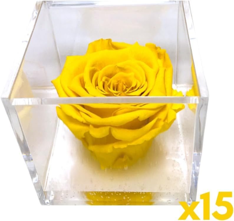PremiumRose 15 Cubi Rosa Gialla Stabilizzata e Profumata da 8 cm con Rosa Eterna Vera, Idea Regalo Mamma, Fidanzata, Amica, Idea