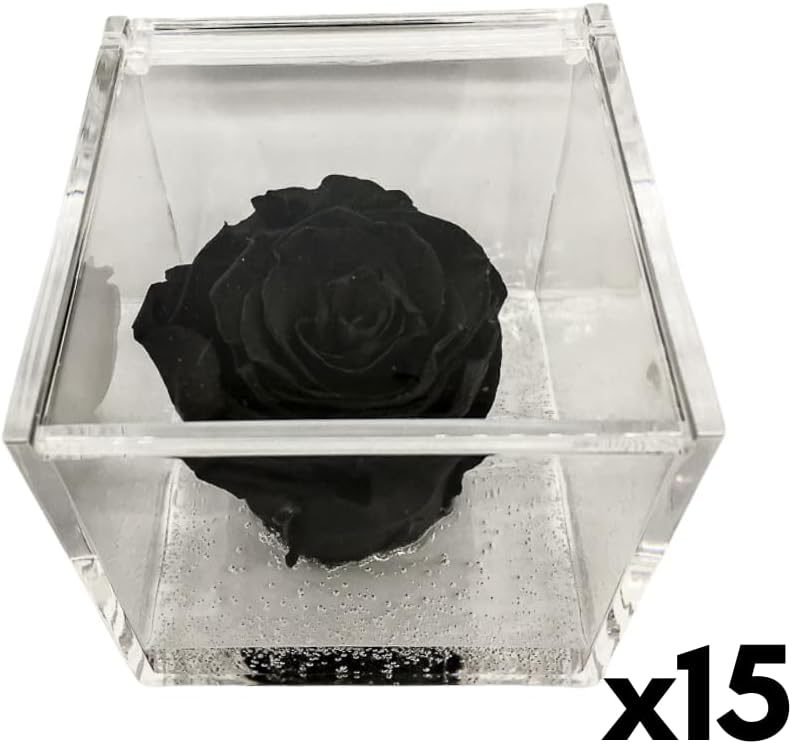 PremiumRose 15 Cubi Rosa Nera Stabilizzata e Profumata da 5 cm con Rosa Eterna Vera, Idea Regalo Mamma, Fidanzata, Amica, Idea