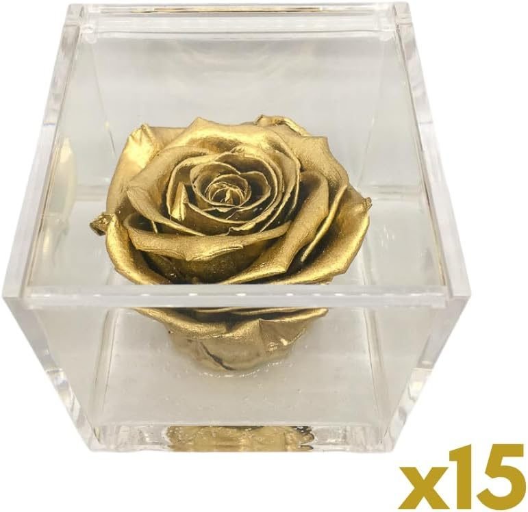 PremiumRose 15 Cubi Rosa Oro Stabilizzata e Profumata da 6 cm con Rosa Eterna Vera, Idea Regalo Mamma, Fidanzata, Amica, Idea