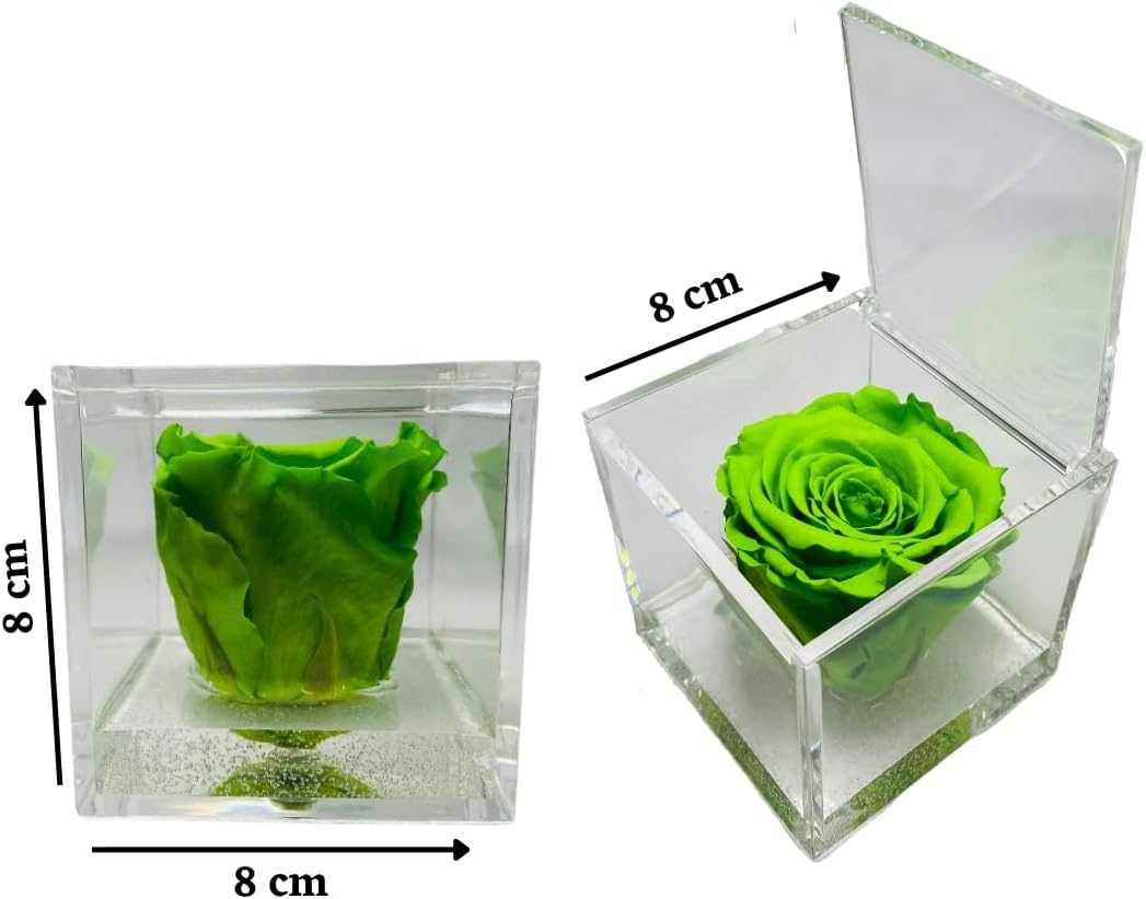 • 🌹 CUBO CON ROSA COLORATA – I nostri cubi con rose stabilizzate colorate sono un regalo originale per ogni occasione speciale. All’interno del cubo trasparente ed apribile, c’è una rosa stabilizzata immersa in un fondo trasparente con bollicine, per ricreare l’effetto di una rosa che galleggia sull’acqua. Ogni cubo racchiude una rosa che sprigiona un’essenza naturale profumata di alta qualità.