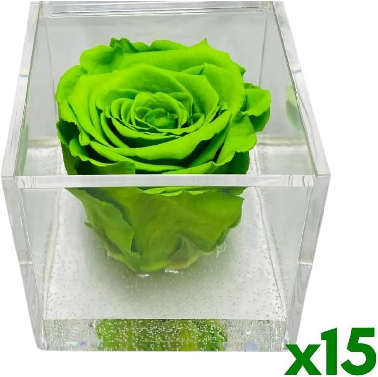 PremiumRose 15 Cubi Rosa Verde Stabilizzata e Profumata da 8 cm con Rosa Eterna Vera, Idea Regalo Mamma, Fidanzata, Amica, Idea