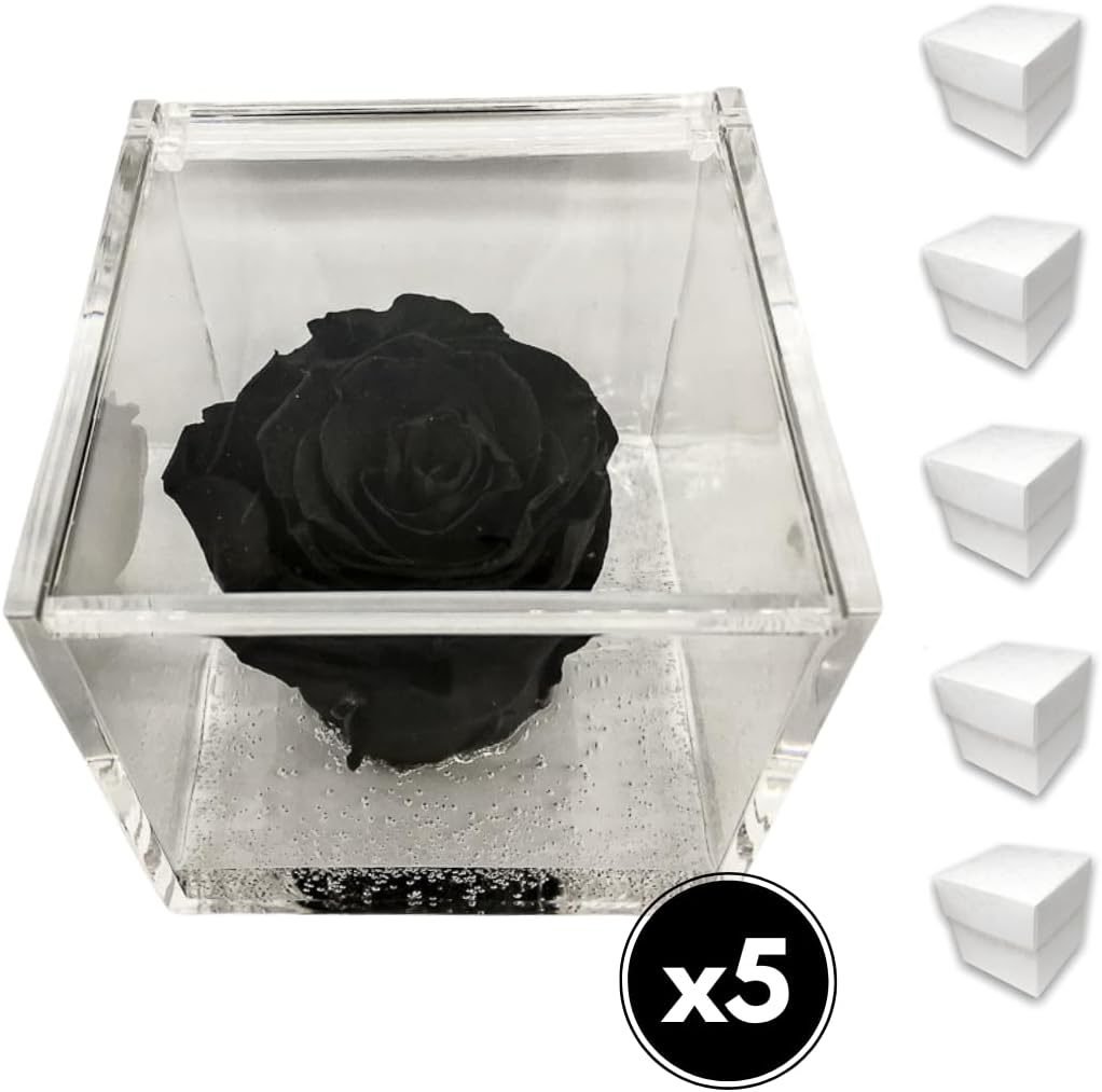 PremiumRose 5 Cubi Rosa Nera Stabilizzata e Profumata da 8 cm con Rosa Eterna Vera, Idea Regalo Mamma, Fidanzata, Amica, Idea