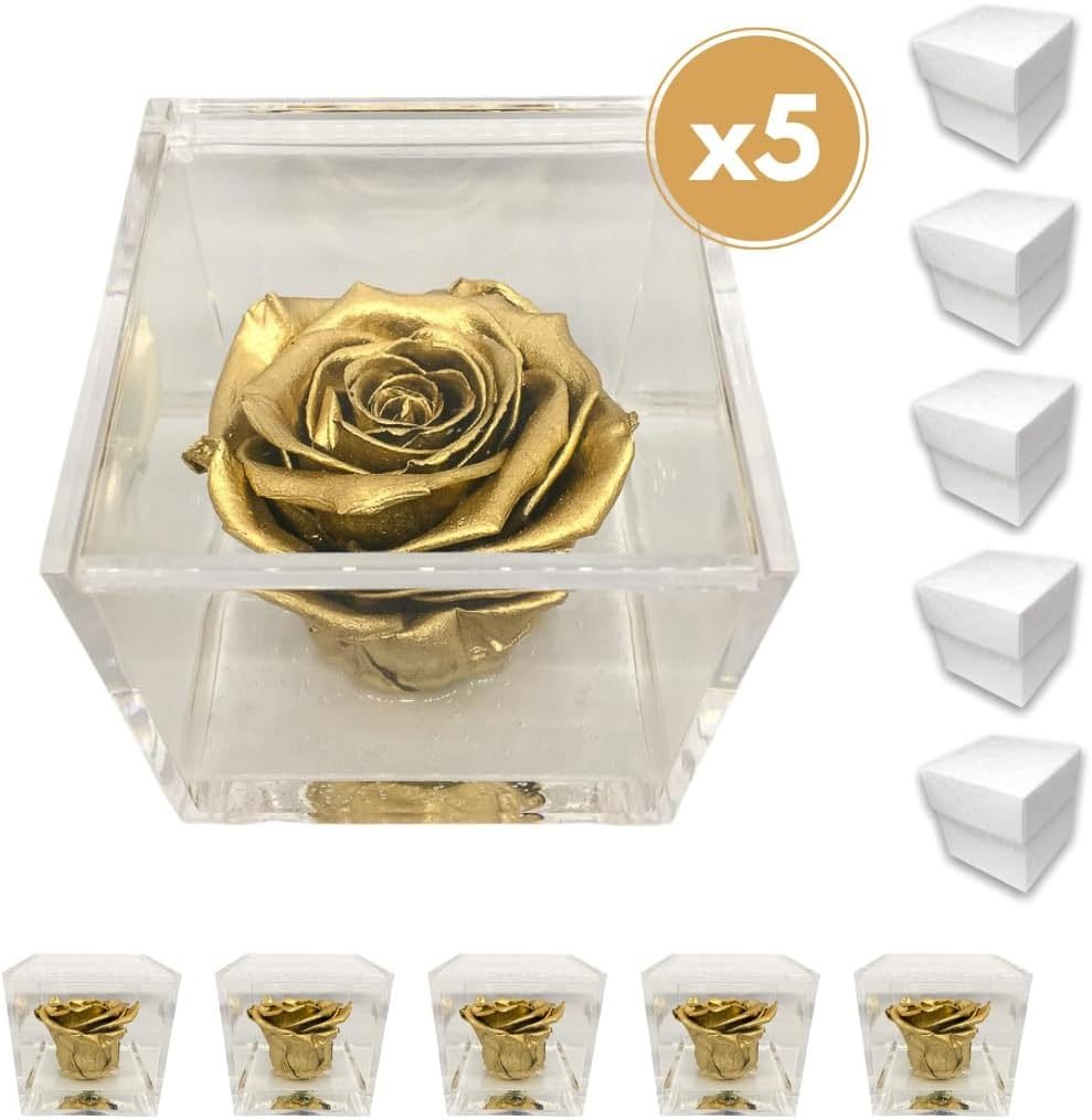 PremiumRose 5 Cubi Rosa Oro Stabilizzata e Profumata da 8 cm con Rosa Eterna Vera, Idea Regalo Mamma, Fidanzata, Amica, Idea